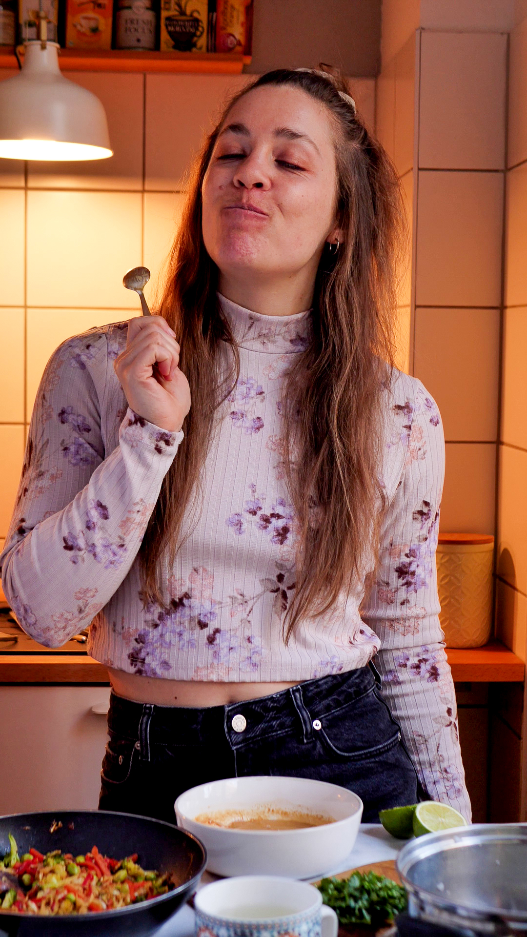 - Optional noch frischen Koriander & Sesam, gehackte Erdnüsse als Topping drüber geben und genieße.