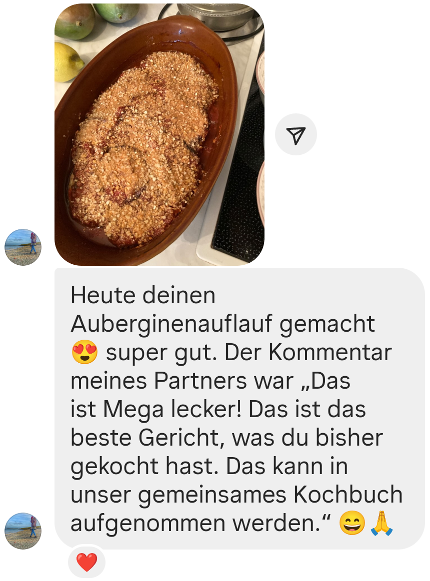 Zum 1. jedes Monats bekommst du eine ganz persönliche Mail von mir – echt, liebevoll & voller Inspiration. Darin teile ich exklusive Einblicke und News aus der veganen und vollwertigen Küche. Und obendrein schenke ich dir 5 % Rabatt auf mein E-Book.